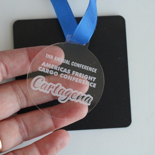 Medallas de 5cm de diámetro en acrílico de 2mm de espesor.